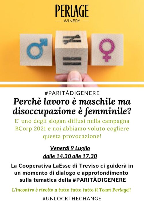 Il team di Perlage ha voluto cogliere la sfida lanciata da uno degli slogan della Campagna BCorp: "Perchè lavoro è maschile e disoccupazione è femminile?".