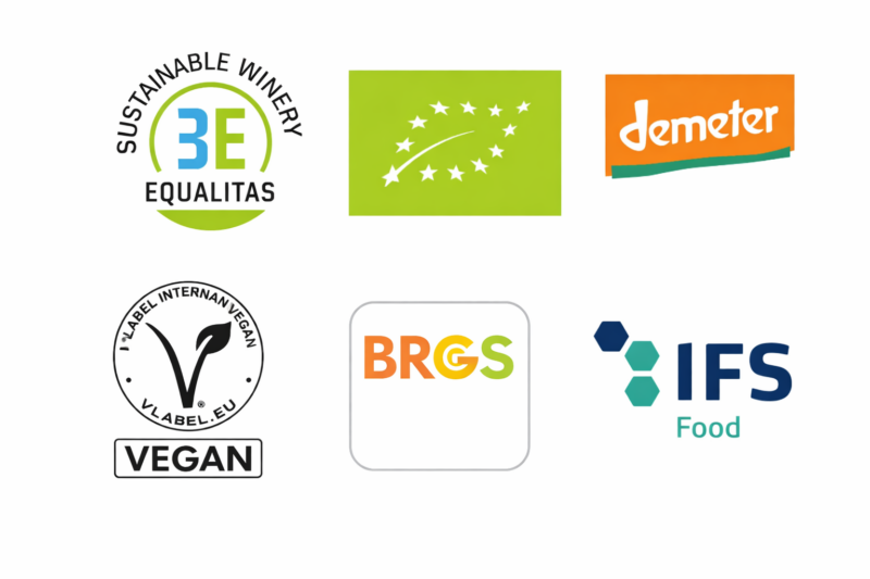 Si tratta di certificazioni di qualità, sicurezza alimentare e conformità ai metodi di coltivazione adottati, rilasciate da enti terzi secondo standard riconosciuti.